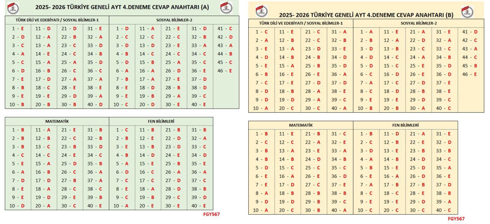 32.Deneme AYT (ÖZDEBİR YAY TG 4 )= Sıralama